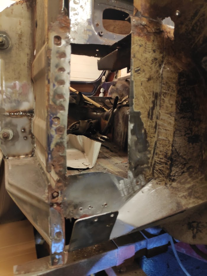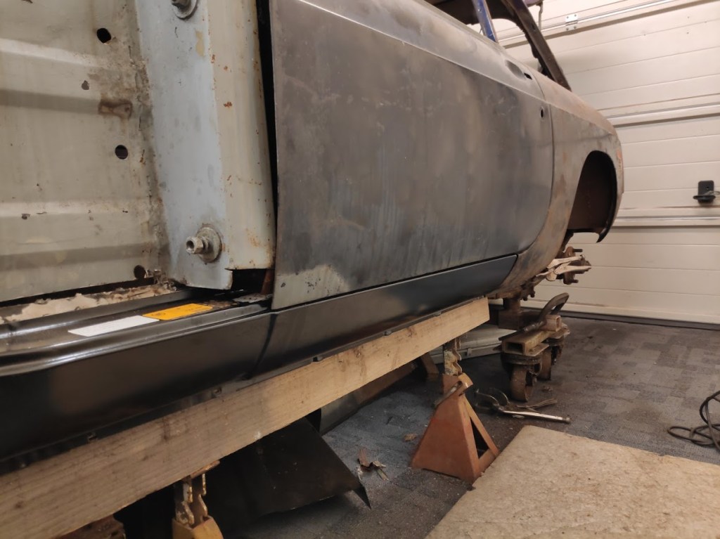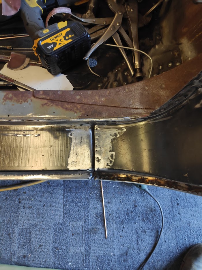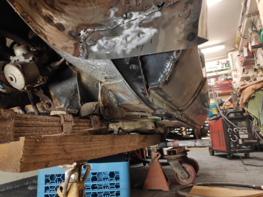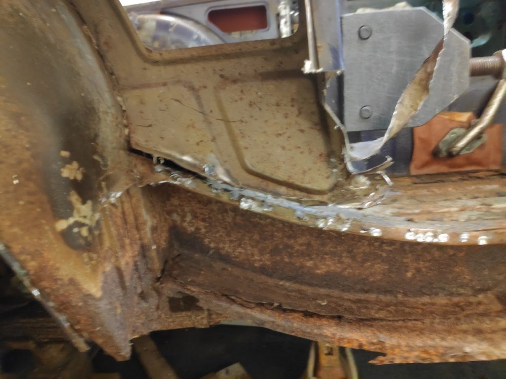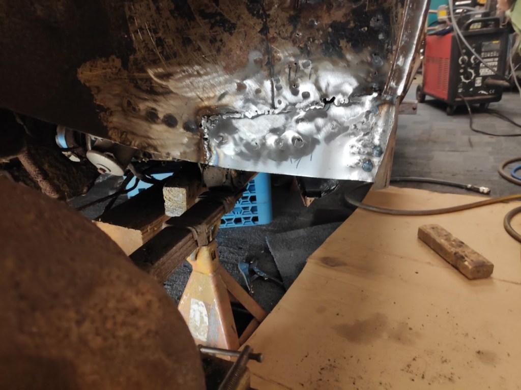 And to the back end, bit of wheel arch rot and sill filler to do. There was some crap on the inner wheel arch that no amount of cleaning or grinding could shift; the welds just wouldn’t go nice. Anyway it’s on for now and secure, I will grind this fully and finish it neatly, again once it’s on the rotisserie and easier to get to upside down.
