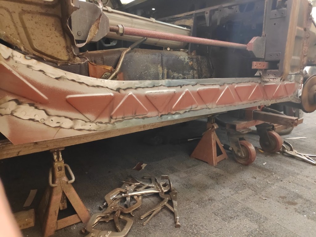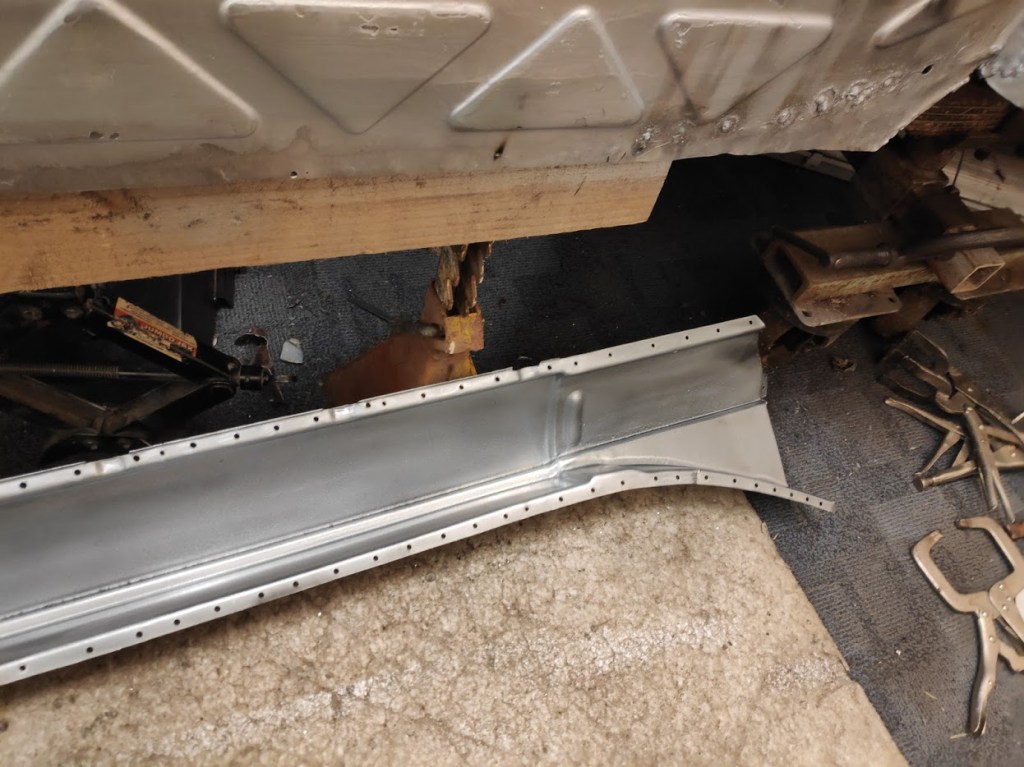 Inner step sill repairs first. These have a joddled flange so they sit flush on the internal side of the inner step sill. Punched and seem tacked on the inner part of the sill, it’s not going to get seen once its seam sealed and has a coat of epoxy sealer. The inner side of the joint on the step section I will seem weld and then grind flush once the car is on the rotisserie. Castle rail fitted well considering there wasn’t much to align it against.