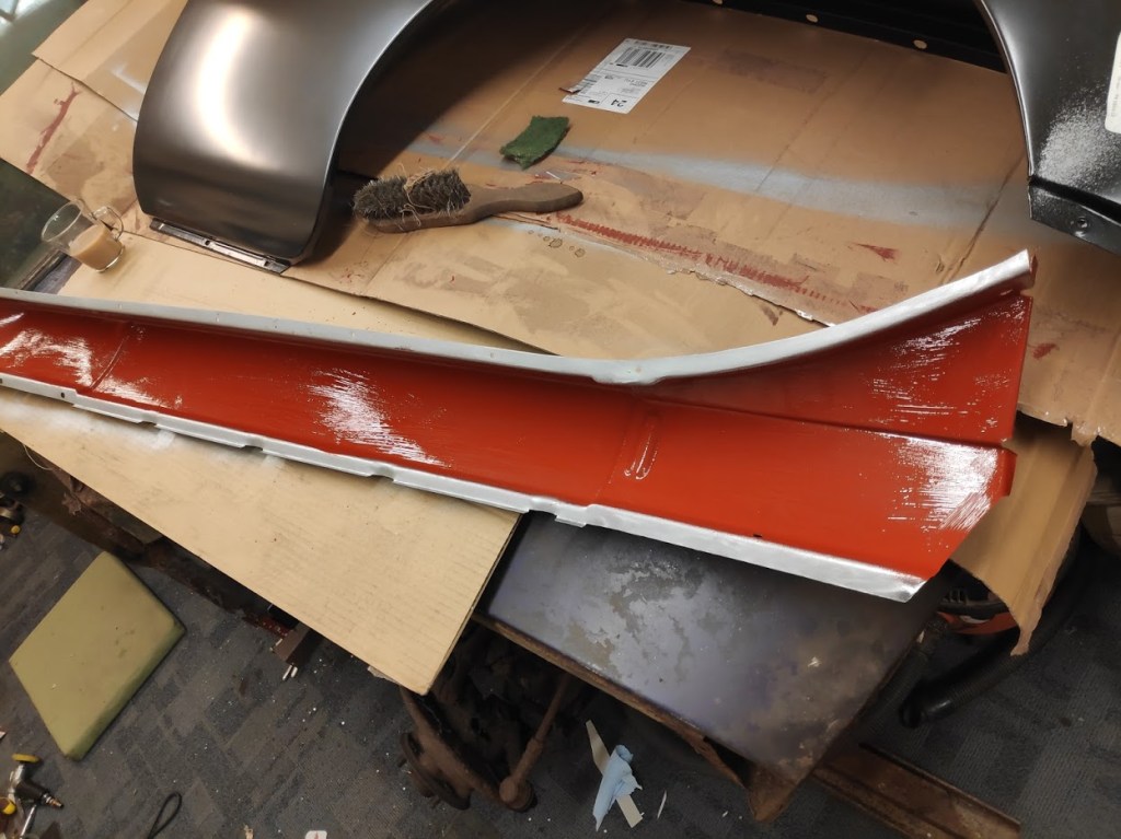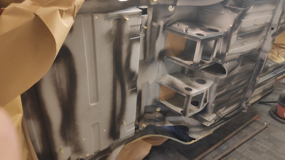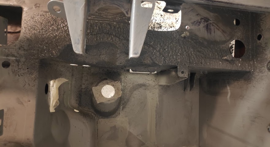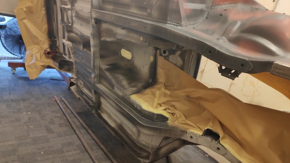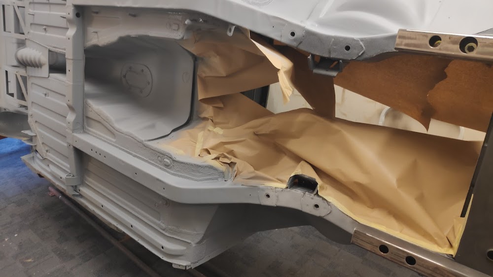 The underside of the front wings were cleaned back and seam sealed on all the flanges and weld joints and then given a coat of epoxy sealer