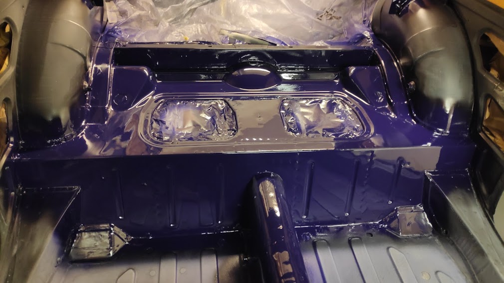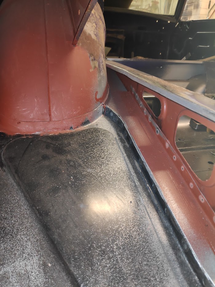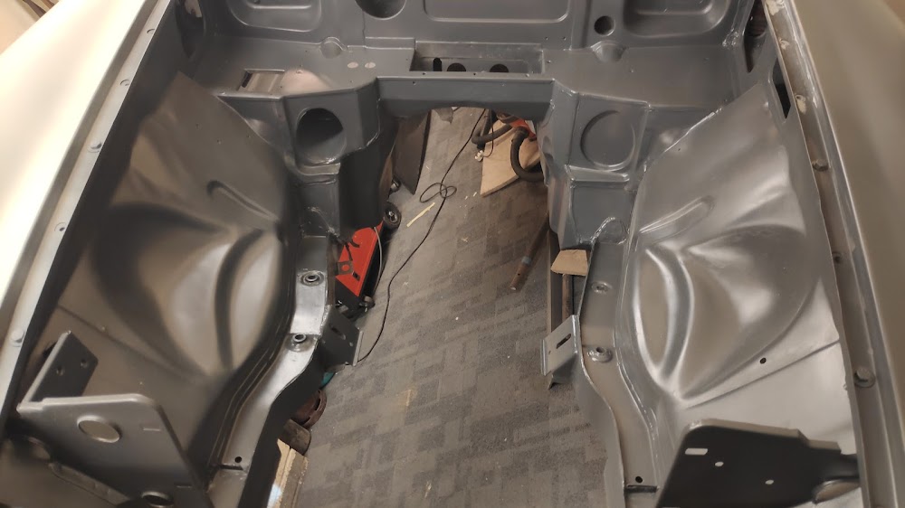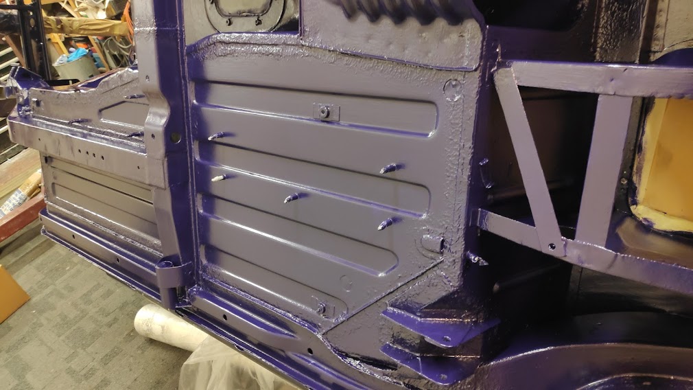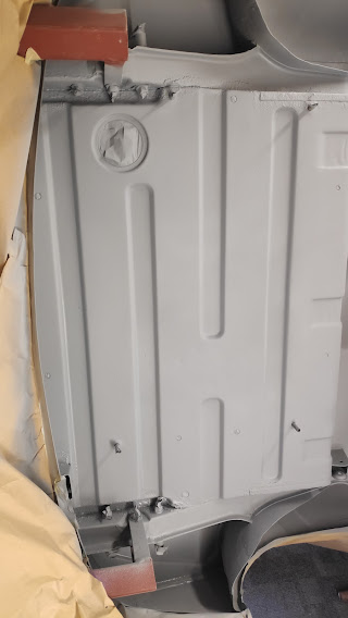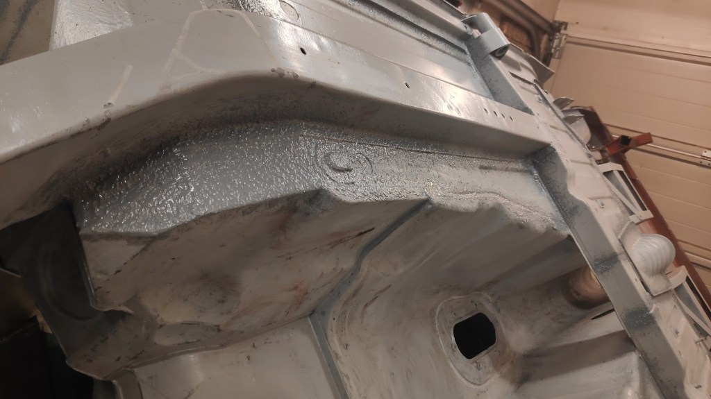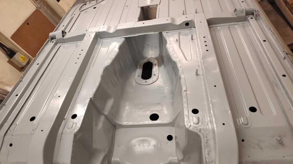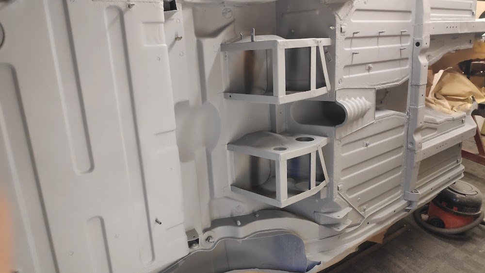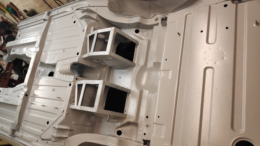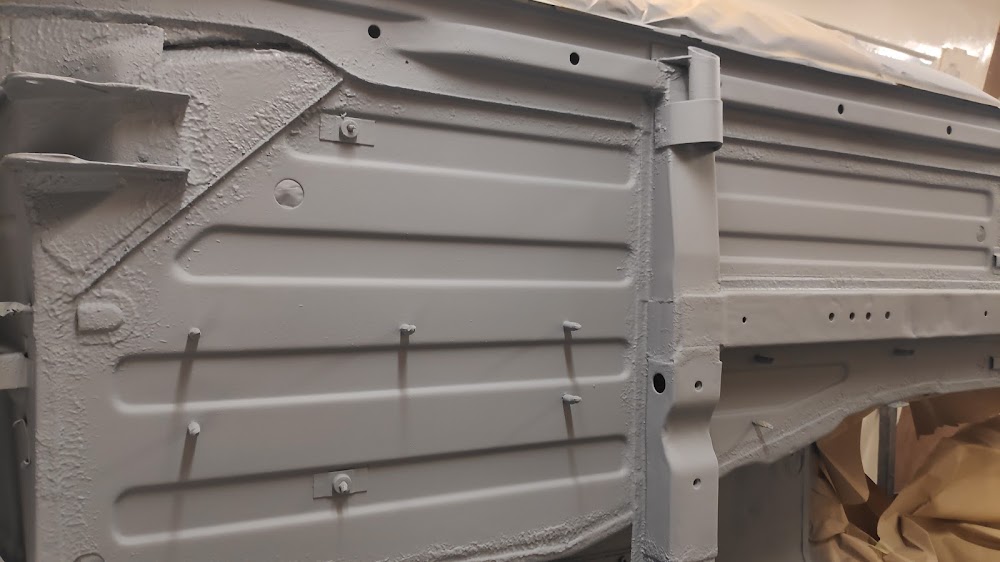 The inside was also sprayed where carpet or trim isn’t stuck down, and or where the final finish can be seen. The floor and sills where these have to be scuffed for glue and trim will get a different colour treatment, there isn’t any point spraying these with the cost of paint the way it is now, colour will match.