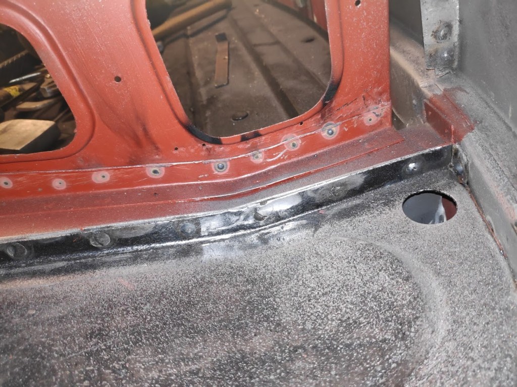 The back end to the sill was a bit tatty so it gave me a chance to tidy it up, even though it will be hidden behind the outer sill. The protection he had done was great; however I gave it all another coat of epoxy sealer and then some weld thru zinc primer on the welding faces, as a token gesture.