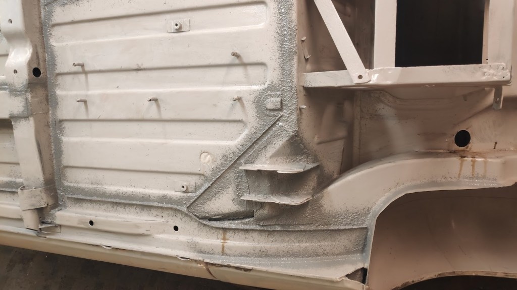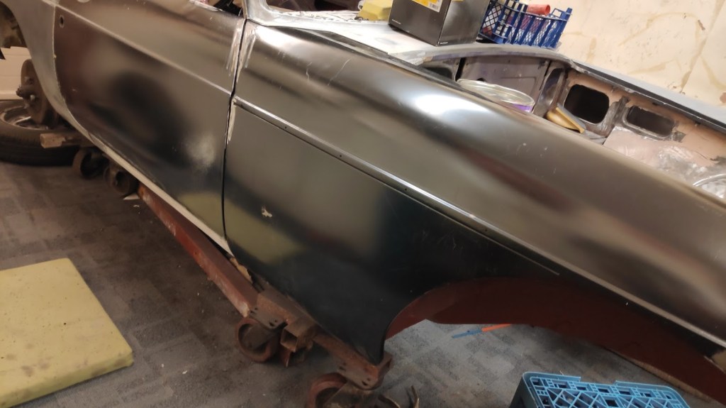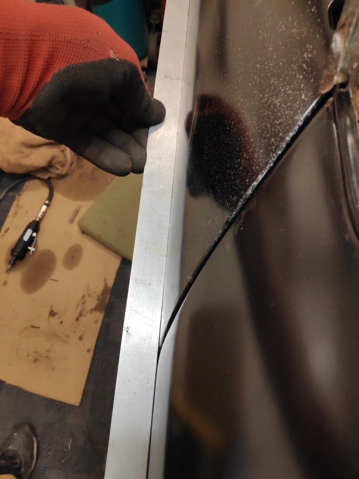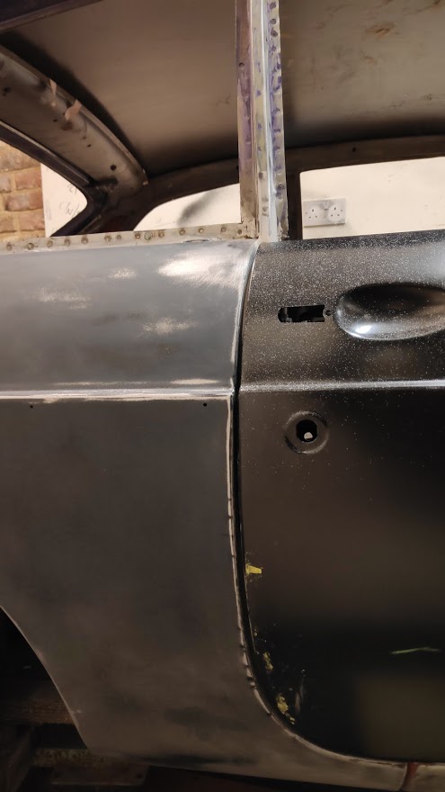 One of the pics you can see the alignment of the panels is fairly good with a straight edge, and only the trailing edge and leading edges are going to need a little work to get them flat and continuous. However the other door pic ( middle one ) it’s quite clear the pressing is just not right on the door in this area and this is going to need the slide hammer and dolly to get right.