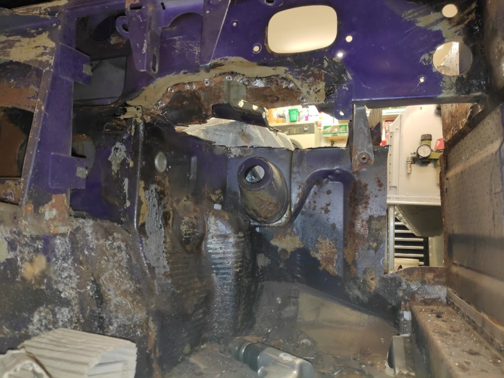 The other bit that had to come out was the steering column support panel from under the dash, you can see the rot in the pics above, and why it needed so many spot welds I don’t know.