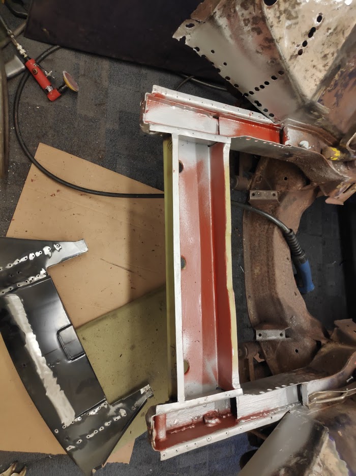 And more or less finished, few holes to plug and some grinding to do on the welds but completely painted and protected internally with some 2k epoxy primer and weld thru on the flanges.