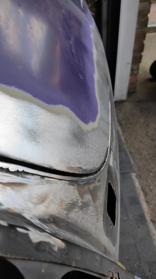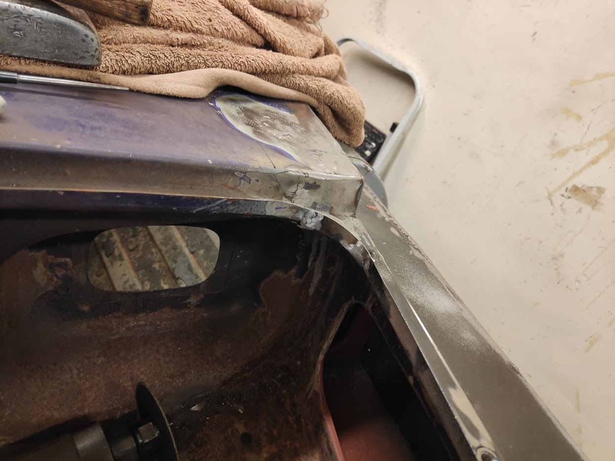 Just some small detail, of the never ending small repairs, inner wing to scuttle channel area, simple fold and use of the shrinker/stretcher and it looks like new, almost.