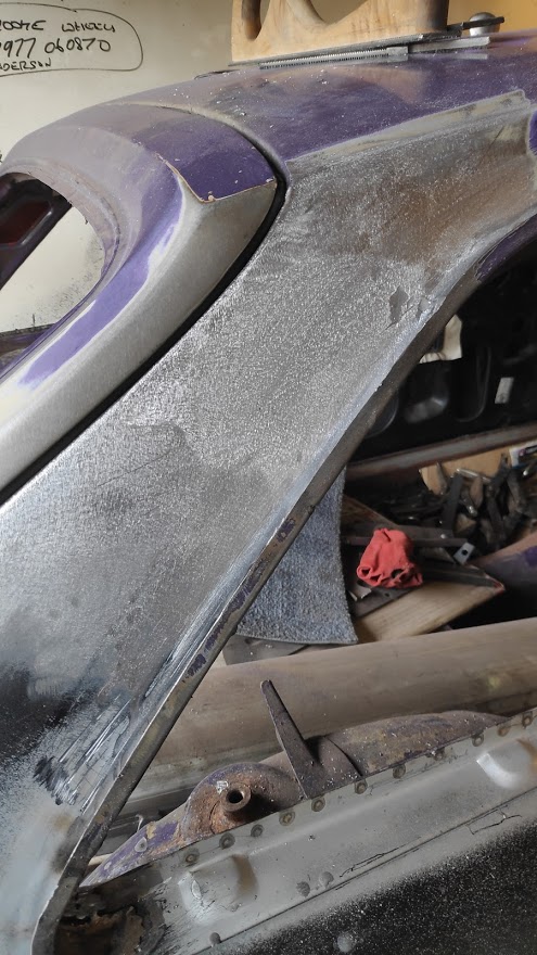 Leadwork filed and sanded, C post to roof will get the same treatment.