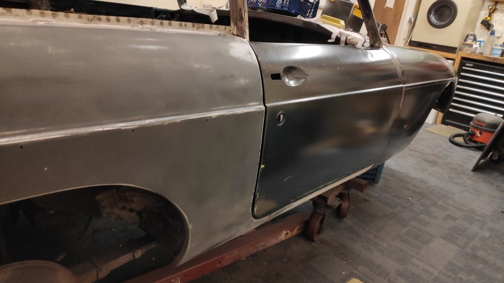 Finally what seemed days I finally got a decent alignment of the wings and doors. The main concentration was on the body moulding line swage profile, this is the bit that stands out the most on the MG’s if not done right, anything else can be sorted but this area is so difficult to get right after.