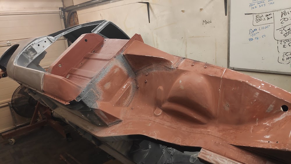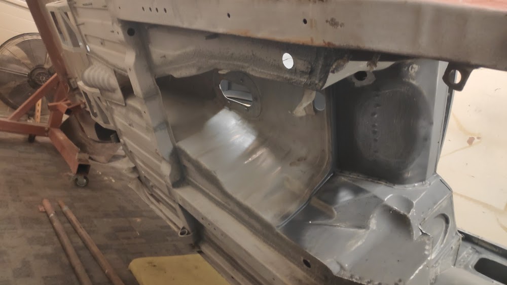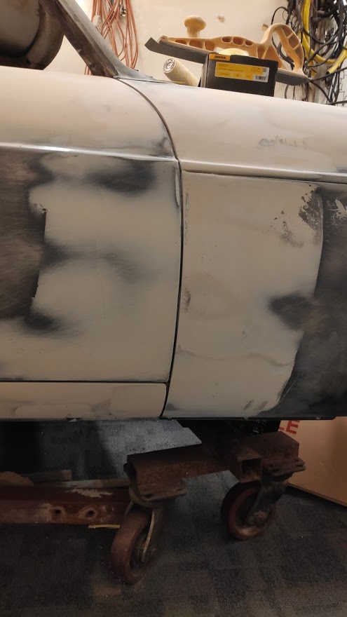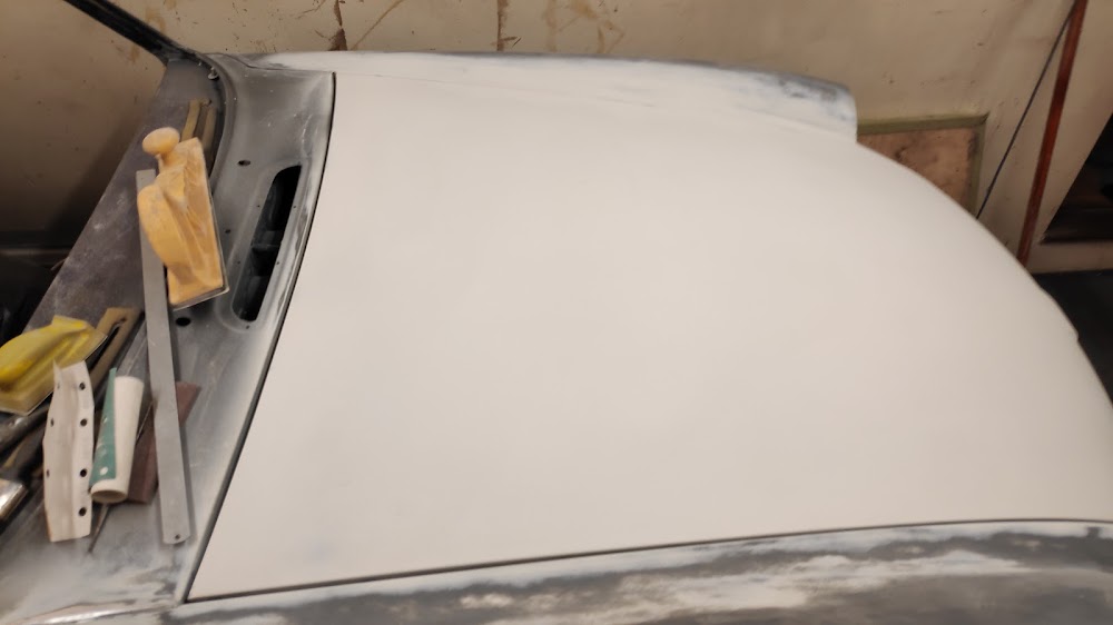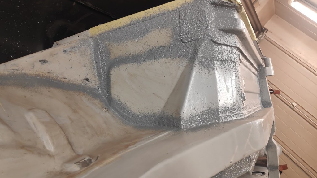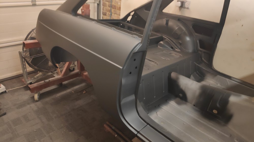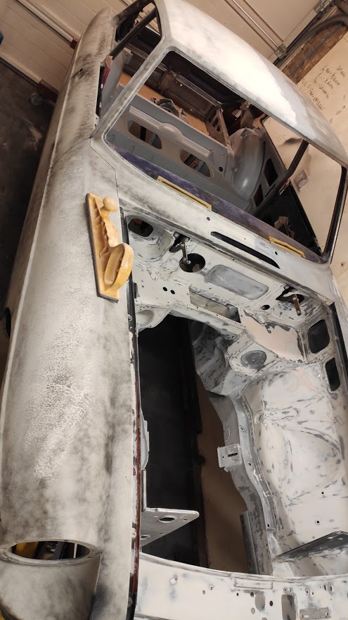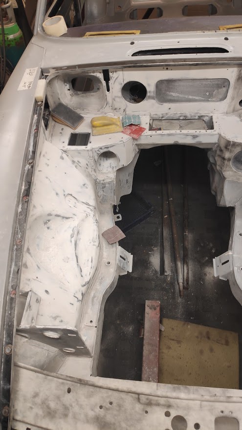 Once the rough filling was done the whole lot was given a coat of epoxy primer, see the n/s pic, and then once more or less all of the body is rough shaped I will move on to dolphin glaze and then polyester primer filler. This I will cover later on. Sorry about the poor pic quality, I didn’t really take a lot of notice at the time, I will try and get some better shots of the progress.