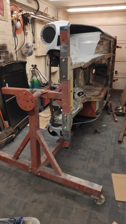 As its a back breaking job getting the sill areas and lower part of the car right, and stripping and finishing the under side it was time to make up some jigs to fit the MG onto the rotissarie.