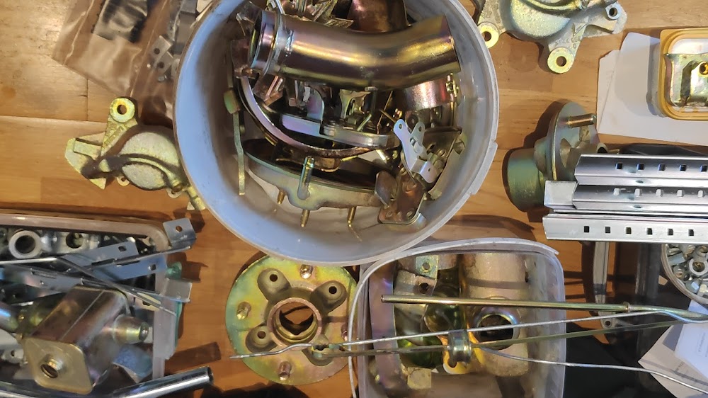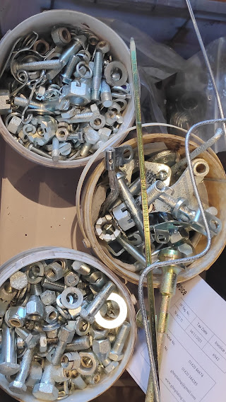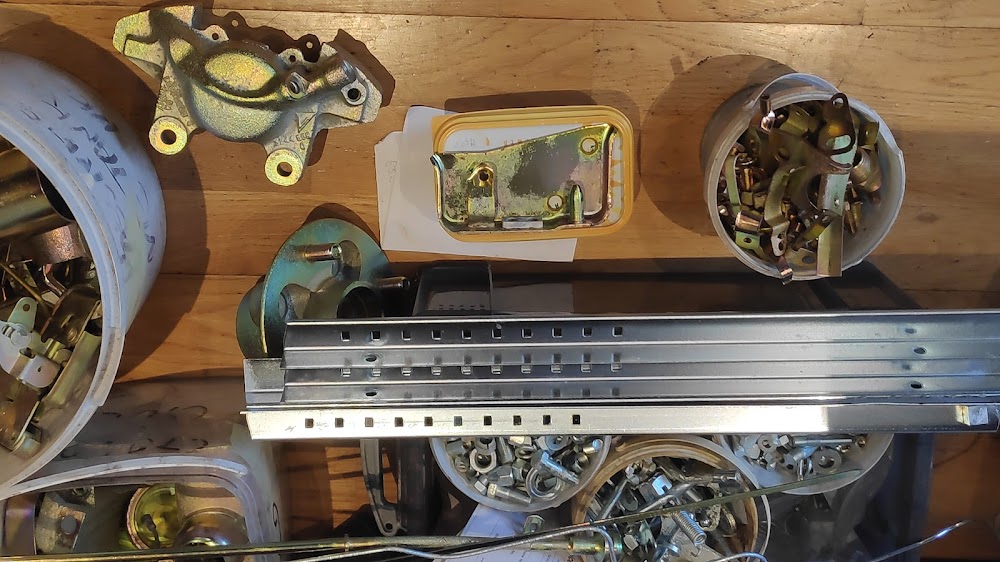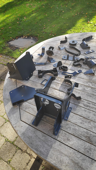 Knowing how busy people seem to be I spent a few days cleaning and prepping everything for zinc plating, silver and gold. Such a shame the old cadmium plating isn’t allowed any more as it was far superior to zinc finish, but I suppose this is better than nothing. All the small bits that are to be painted also got a coat of zinc for extra protection. Just to work out where all the nuts and bolts go now. The bigger painted items getting a coat of epoxy prior to undercoat.