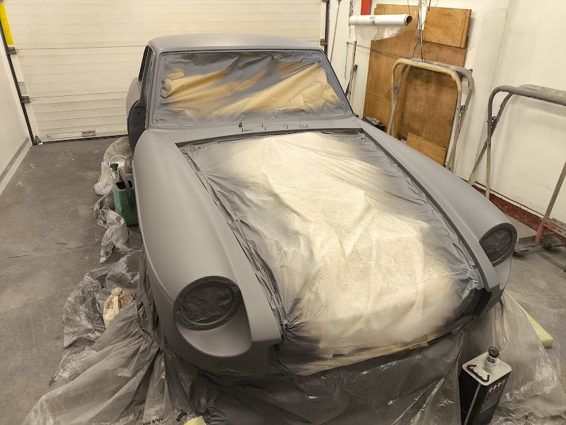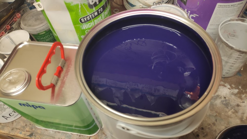 The existing primer was keyed back to remove any marks and contamination and a final coat of epoxy sealer/primer was applied. There isn’t any real build on this as it wasn’t required at this stage, so a light key with 600/800 w&d ready for the top coat. There is always a discussion on if dry sanding or the old w&d is best. I like w&d blocking and sanding as it keeps dust to a minimum and I feel it gives a nicer finish ready for paint. But no doubt the pros and cons will go on as long as we paint cars and bikes.