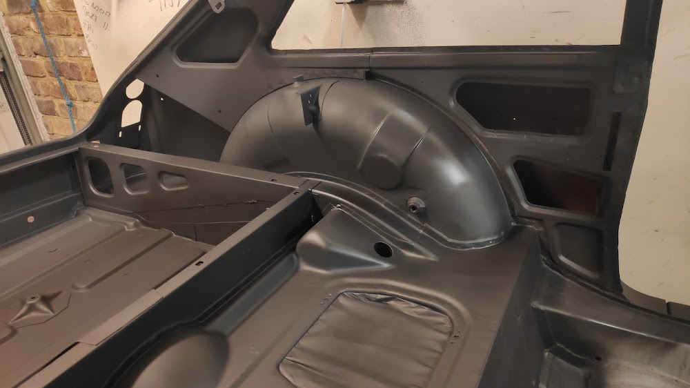 Boot floor mocked up and fitted, and fitted nicely first time. Also refitted load panel side supports back into spare wheel well. Had to remake the bottom bits to these first.