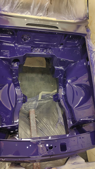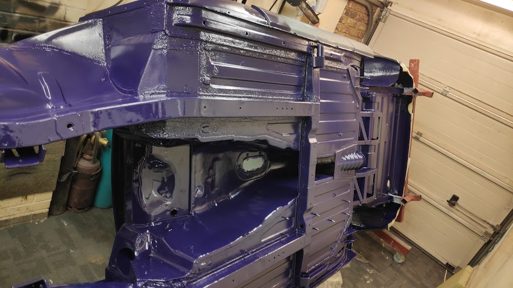 The underside was then treated to several coats of the final colour. The debate was if to have a flat and polished underside, but I’m not a lover of trailer queens and I drive all of my cars, and hopefully the person who buys this will do also, so with the 3M sealer on the joints, stone chip on the flat areas and a good finish will protect the car regardless of the weather its driven in.