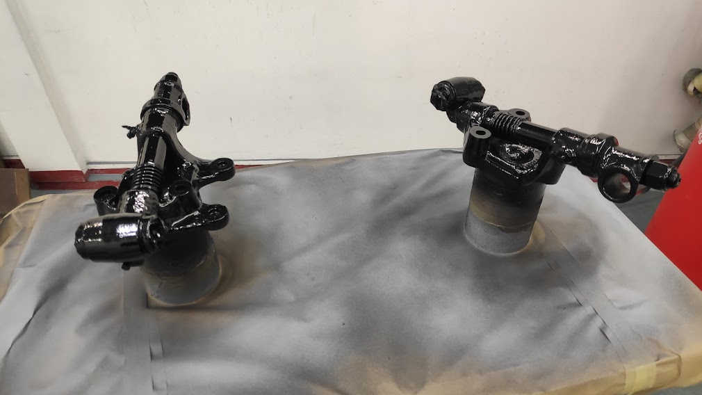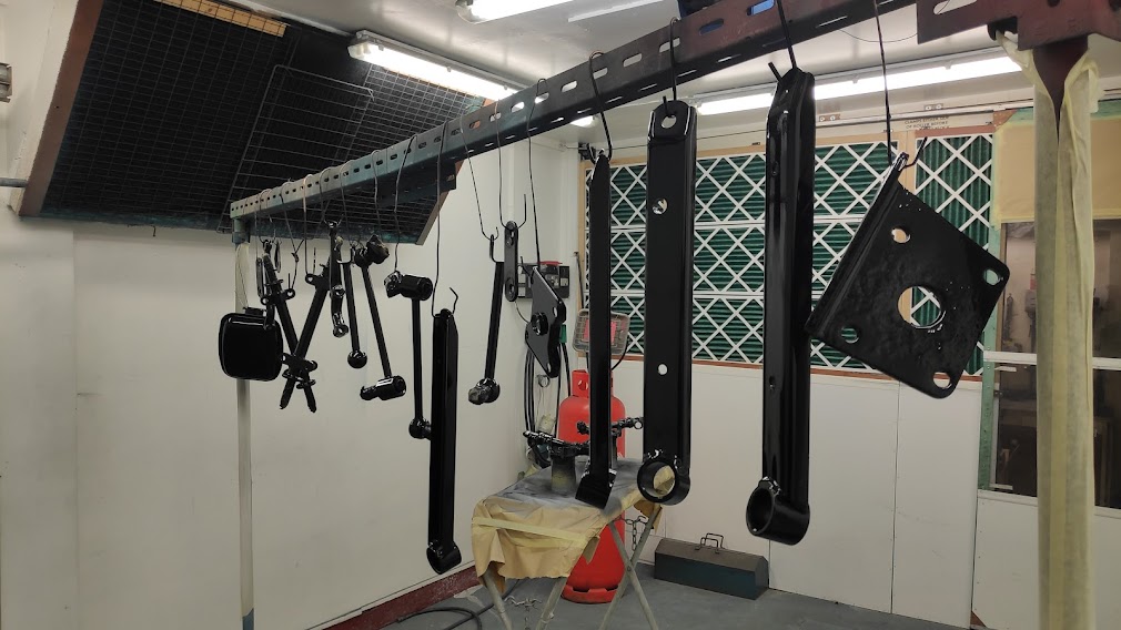 Finally it was time for the grubby bits. Any bits there were going to be reused were degreased, wire brushed, shot blast cleaned and generally taken back to bare metal. Some were treated with a phosphate coating prior to all being treated to a coat of epoxy sealer. Even the new items were keyed and epoxy painted first. Some items were perfectly salvageable and could be reused but were pitted and in need of a bit of poly spray filler, some will say not worth it, but just makes that bit of difference, and makes it easier to keep clean.