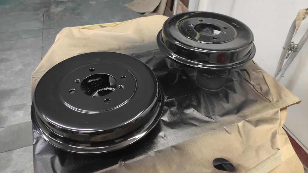 All the items have been zinc plated and or painted with 2k satin black. Had to get a new mix and this lot seems to have a bit more gloss than I wold like, but its underneath so not too much of an issue. Rear brake rebuilt, and just the hub nut to torque up and split pin to fit.