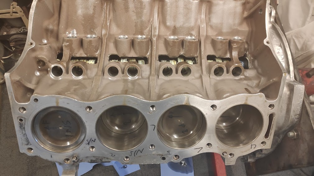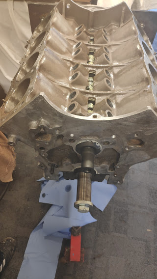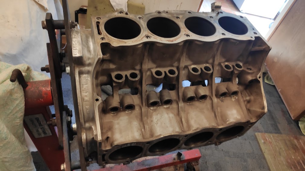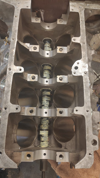 Good news from RJ Payne, the block and crank were more or less perfect, with no wear, so the block and bores had a hone and glaze bust and the crank journals had a polish. Block mounted and rebuild started.