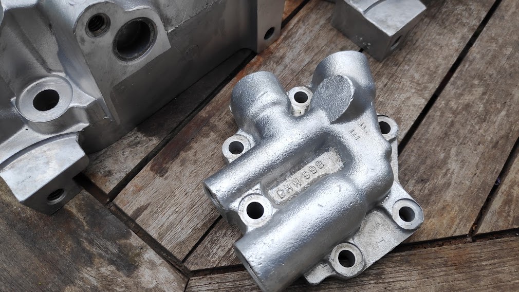 So while I was waiting the vapour blast cabinet was fired up again and I worked on getting the heads and other alloy components in decent condition. The cast items came up really nice despite their original condition.