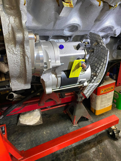 Manifolds were treated to a few light coats of Hi Temp black and a new Hi torque starter motor fitted. A new heat shield was purchased only to be returned due to the rubbish fit and finish, so I made my own. Not sure if it will be big enough to keep the heat away but we will have to see.