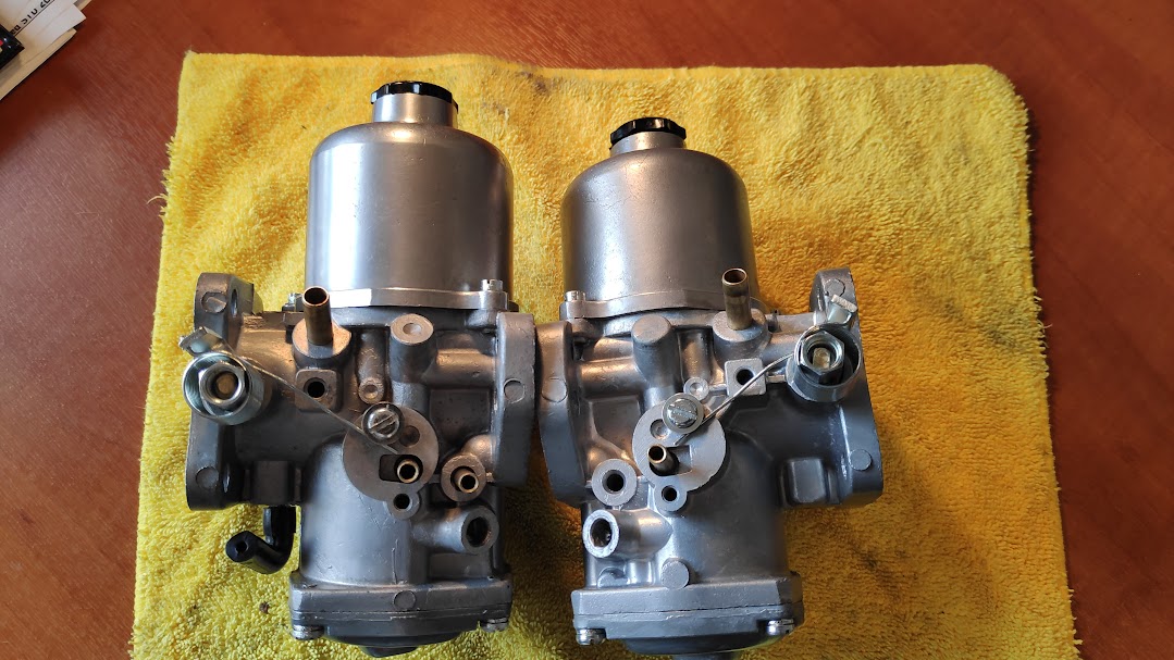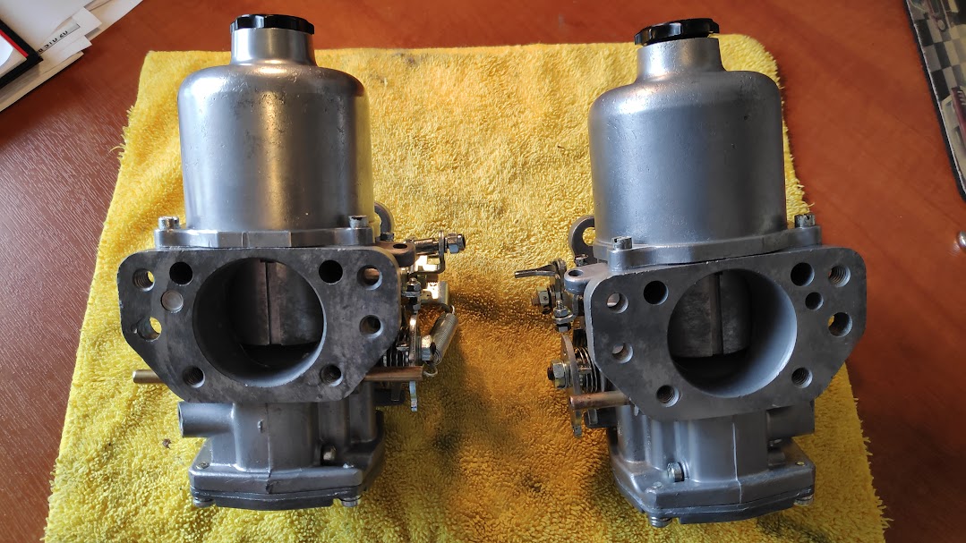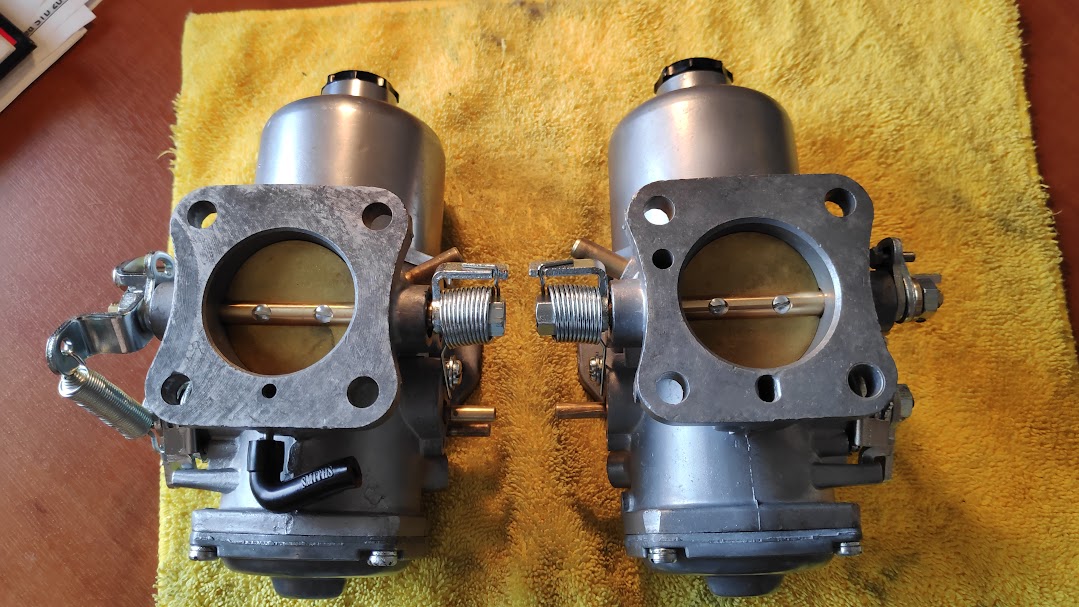 Carbs were vapour blast cleaned and all fixtures and fittings zinc plated. Cant remember where I found it but one of the older SU’s uses the same dia throttle discs as the V8, without the dreaded pop off valves. I suppose I could have soldered these shut but this was a simpler method. And the carbs rebuilt ready for fitting.